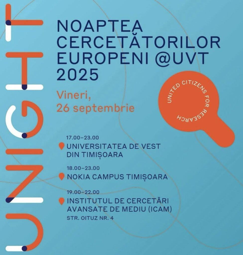 Noaptea Cercetătorilor Europeni 2025 🌌 Noaptea Cercetătorilor Europeni 2025@UVT a adus din nou știința mai aproape de comunitate! În 26 septembrie, Timișoara a trăit magia cunoașterii alături de cercetători, studenți și sute de vizitatori curioși. În sediul central UVT, la ICAM și în Campusul Nokia, experimentele de chimie și fizică, roboții inteligenți, tururile virtuale și […]