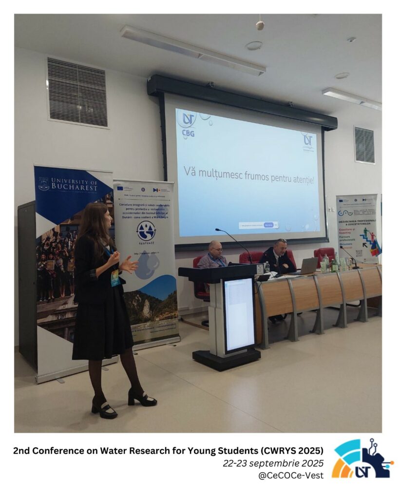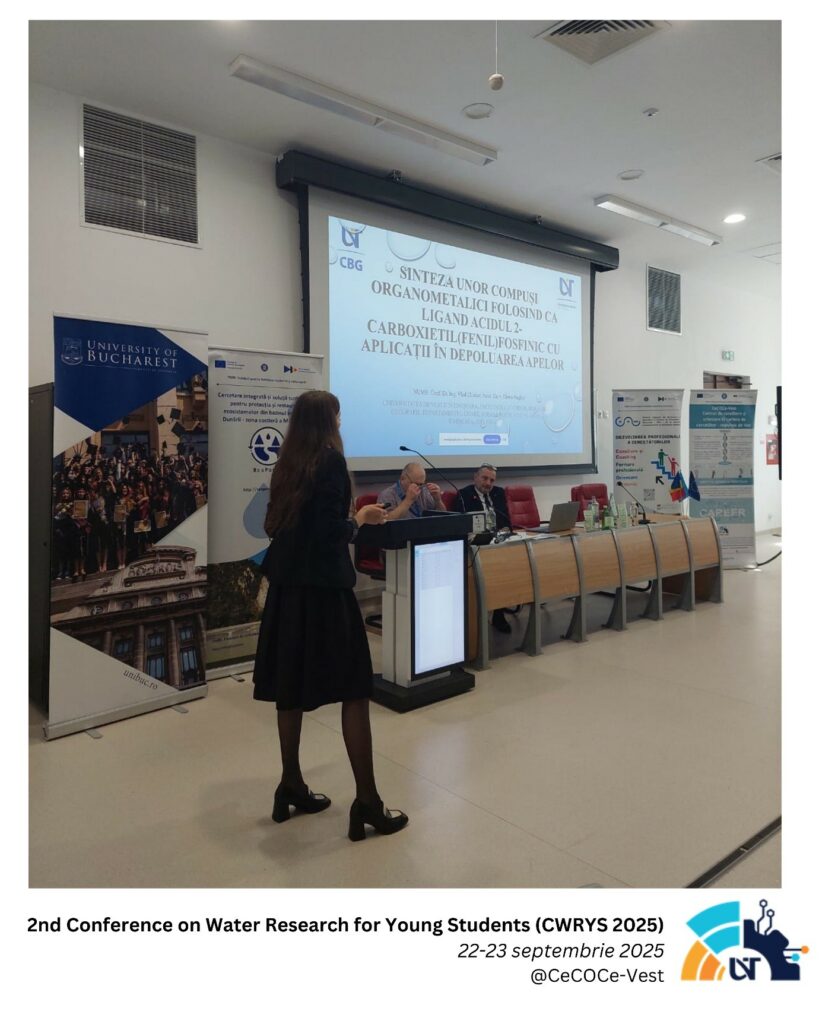 În perioada 22–23 septembrie 2025 a avut loc 2nd Conference on Water Research for Young Students (CWRYS 2025), un eveniment dedicat tinerilor cercetători interesați de domeniul apei, cercetării de mediu și soluțiilor sustenabile. Conferința a fost organizată cu implicarea Universității de Vest din Timișoara, în parteneriat cu CeCOCe-Vest și SciResCareer, în cadrul activităților desfășurate în rețeaua națională de centre de consiliere și orientare în cariera de cercetător.